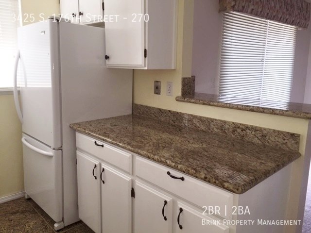 Available Now!! Sunny 2 bedroom, 1.5 bath condo. Updated kitchen features granite counters and flooring, plus breakfast bar. Large open floor plan living and dining rooms, living room overlooks lovely courtyard and pool. Large covered deck off dining room. Spacious primary bedroom, 2 walk in closets Updated shared bath, private vanity in primary bedroom. Large 2nd bedroom with walk-in closet. Water, sewer, garbage included. Property has 3 pools, sauna, workout facilities & cabana. Laundry facilities onsite. Pet possible, some restrictions apply.